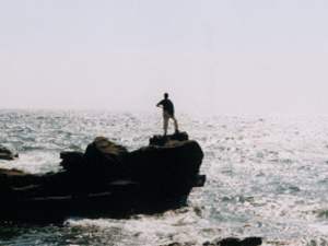 岩場に弾ける波頭が、ときおり白い泡を見せる。
