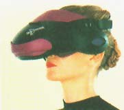 HMD(ヘッドマウントディスプレイ)と呼ばれるウェアラブルデバイスで、風体は巨大すぎるゴーグルという感じのものだ。これを装着することで、体感120インチほどの大きさの画面を目の前(3メートル先くらいの感覚)に展開してくれるモニタ環境の一種である。原理は、内部の液晶画面(1コ)をプリズムで両目用に分け、レンズで拡大させているのだと聞いた。ボディ形状はテムジン(バーチャロン)の目の所みたいとも言われるが、どちらかというと「マイクサウンダース13世」だと私は思った。ちなみにカラーリングはエヴァ初号機っぽいムラサキである。