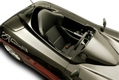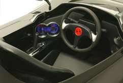 そう、幌なしのオープンカーという思い切りすぎたこの乗り物は、実は内装ごと防水なのだ。足下などには水が抜ける穴があり、ハンドルはもちろんシートもレッグスペースも小物入れも防水だ。
