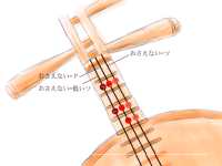 ビデオの音声を頼りに、月琴の二弦と三弦(ドと、低いソ)を合わせてみる。