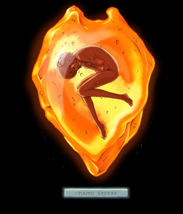 虫入り琥珀の写真集をみて、なんとなく描いた絵。