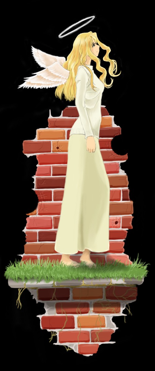 製作環境:PowerMac G4 450・WACOM FAVO・Painter7よく聞かれますが、背景に深い意味はなく、感覚で描きました。レンガというよりタイル張りっぽいですね。どこかから空間ごと切り取られてきた戦地の建造物の一部、という感じ。