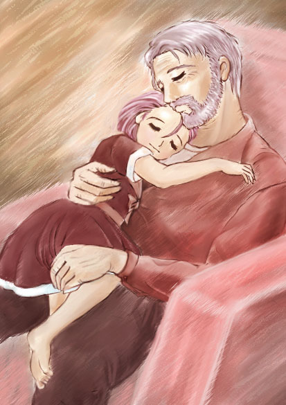 制作環境:Macintosh Performa 5440(88MB)・Painter4.0・Photodeluxe・WacomArtPad2 暑い夏のさなかでも「あたたかさ」が感じられるでしょうか。「母娘再会」以来の味があります。 昔の絵をリメイクすることは、原則としてしませんが、これには二年目の同じ味でしょう。