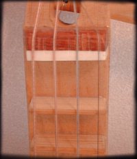 ギターなどにあるサウンドホール(響孔)はないが、よく見ると弦を留める部分に隠れて小さな孔が空けてあった。