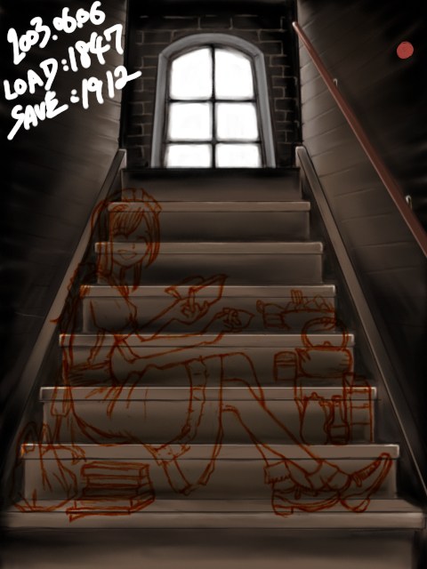 すでに記憶が定かでないが、人物・小物・階段・手すり・黒丸と日時の五枚程度のレイヤーで描きはじめた。