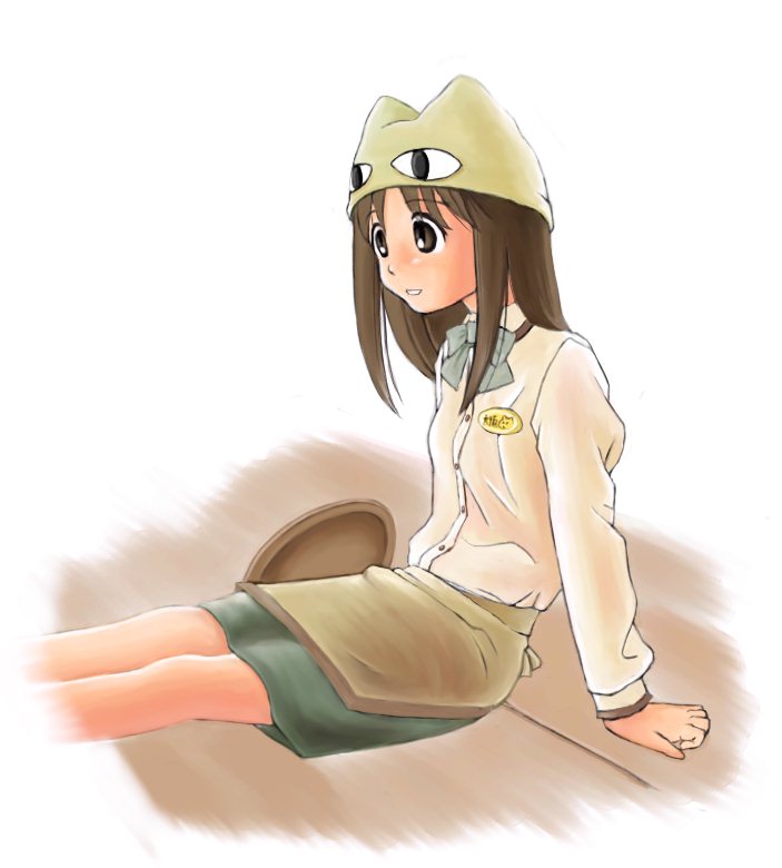 「電撃大玉」という「電撃大王(「あずまんが大王」掲載誌)」の出張版のような雑誌(発売時期の通販のみ・まんだらけで入手)があるのですが、それのおかげで大阪ドール(製作:マーミット)用の完璧な設定資料があるのに、なぜか描こうとおもった絵は文化祭ぬいぐるみ喫茶のユニフォームでした。なんででしょうね。たぶん、他の誰も滅多に描きたがらない絵にしようという、ひねくれた動機だと思います。 カラー指定が無かったので、勝手に配色。タイとエプロンはオレンジ、スカートは赤、で、ネコ帽は「青」! というイメージがあったのですが、まんま描いてみたところ、ものすごい色合いに・・・。