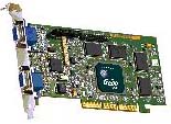 形状を見ての通り、同時に二つのモニターを制御可能なボードである。現在はこのカードをAGPにさし、デュアルディスプレイ仕様だ。これもMacOSX(10)に対応したドライバソフトの開発が待たれる。純正品のグラフィックボードもそうだったが、青色の発色が美しい。