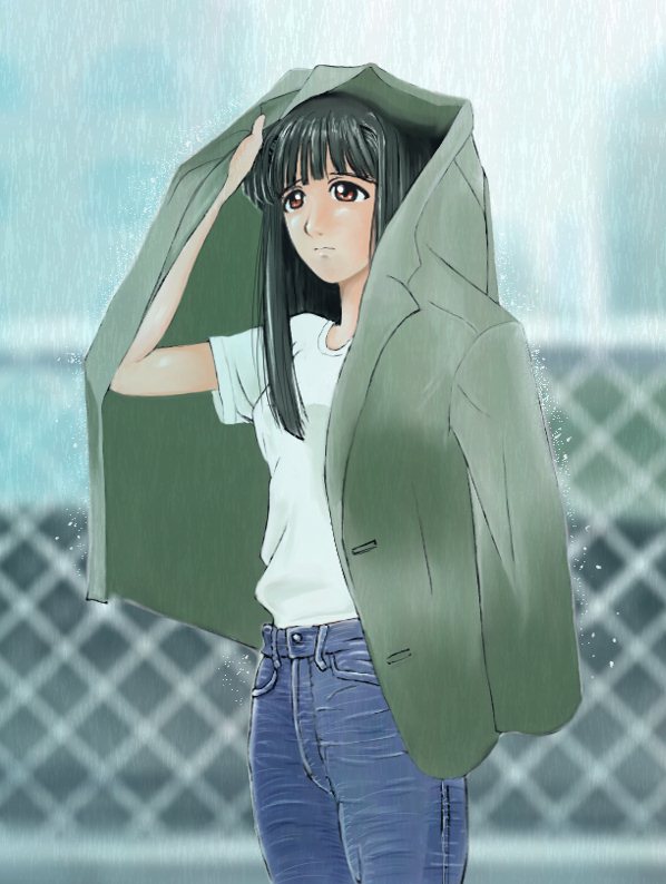 今回の絵には、とくに物語も解説もない。 素子編二話目の、雨に打たれて街をフラフラ彷徨う姿から連想した。 これ描きはじめたのは、まだ夏真っ盛りだったのですが・・・。アップする頃、名古屋が水没して三宅島が噴火しました。 ラブひなは、強引とはいえ話のテンポが良く、キャラクターも可愛いく面白い、という点は好きなのですが、私にとってのツボ的な「感動」という魅力があまり無いため、正直、それほどハマっていませんでした。 この素子絵は、いわゆる「キャラ萌え」と言えましょう。ですが、一枚描いてすっかり落ち着きました。 ただ、ラブひなは、キャラ立ちが凄まじいくらいに立っているので、絵として描くのは面白そうです。これからも(現時点でリクエストが一枚残)たまに描くかもしれません。
