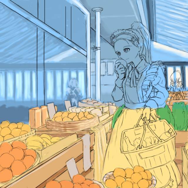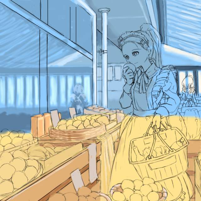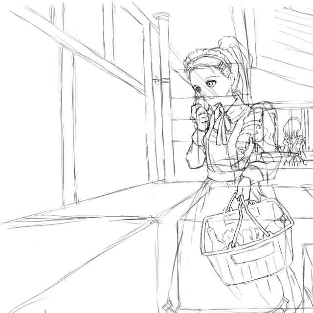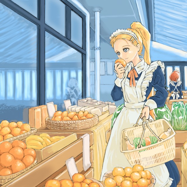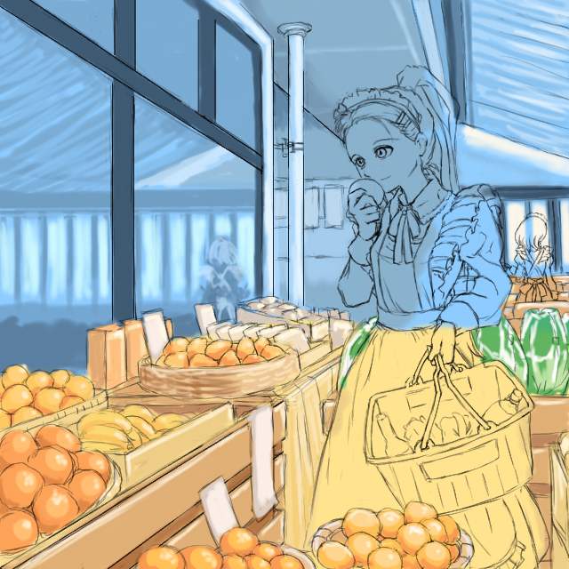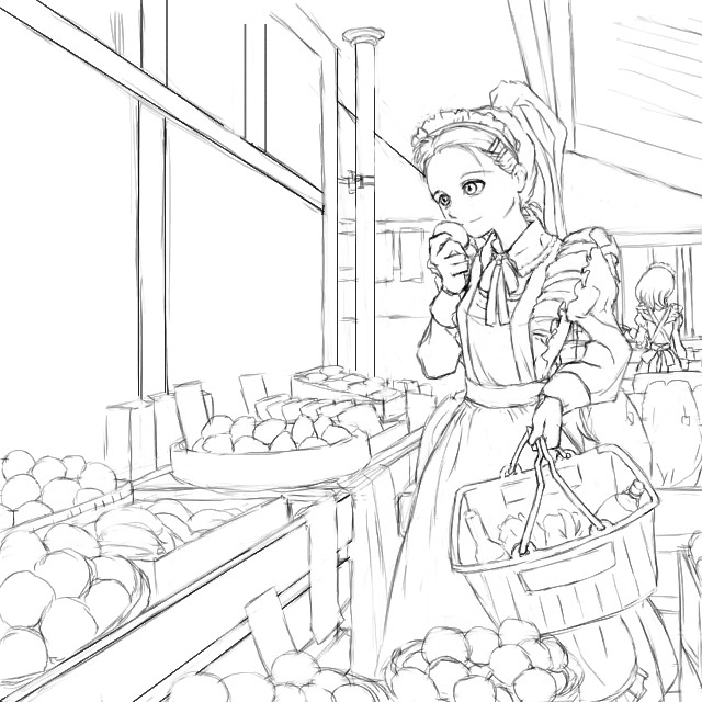 以前、メイド野球のときチラッと書いた「普通に食料品店で買い物するメイドさん」の図。