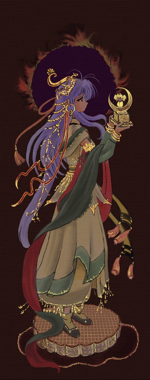 仏教の神。十二天、三光天子のひとり。月に住み、世界を照らす。