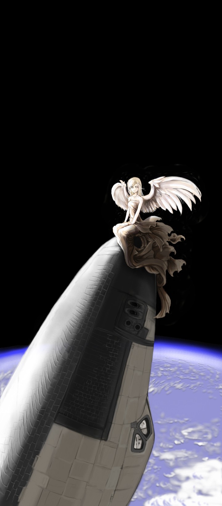 黒背景に溶け込んでいる状態で、スクロールで現れた天使のサイズに認識が調整されたところに、次いでシャトルのスケール感が判明してビックリ…という変な効果があったらしく、意外にあちこちで補足していただけました。