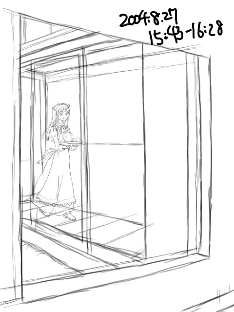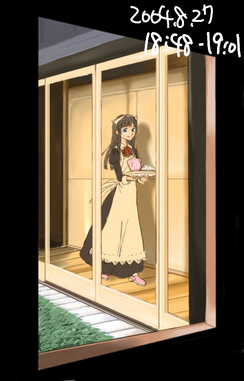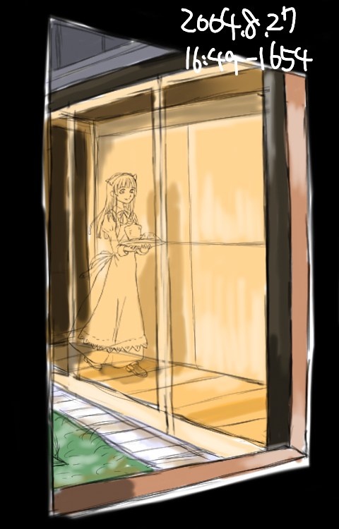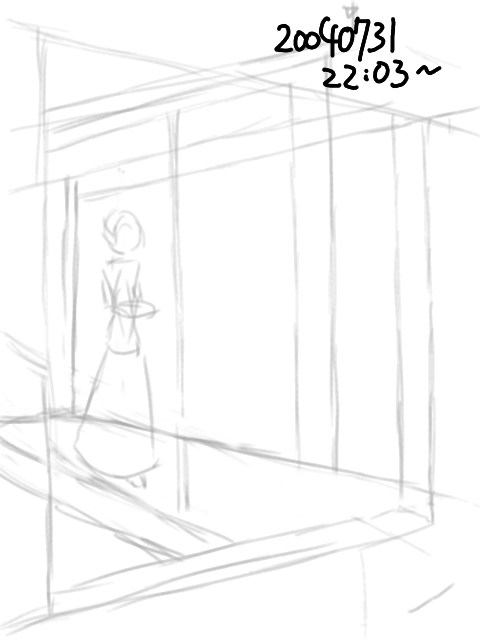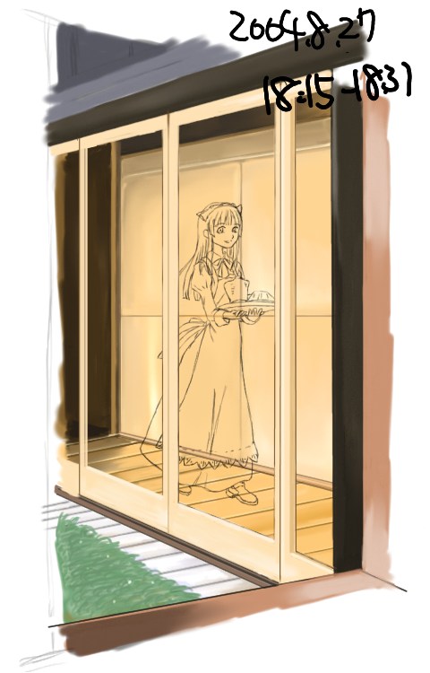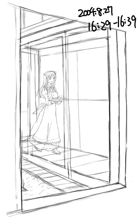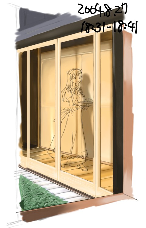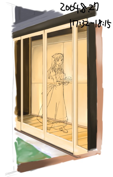 所要時間:16分サッシやメイドさんのつくる影を描く。