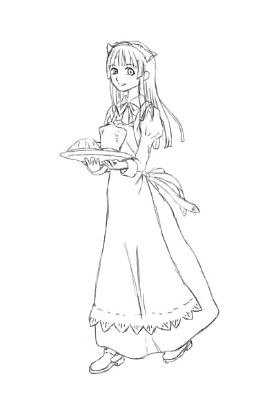 メイドさんの絵は、このとき前に描いた人と共通の髪型だった。