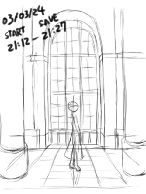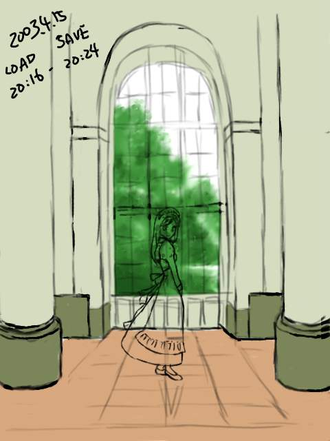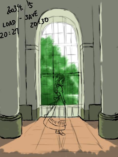 このときは、まだメイドさんにしようとは考えてなかったが、ペインターの「鉛筆」で、適当に背景と人物のあたりをつける。