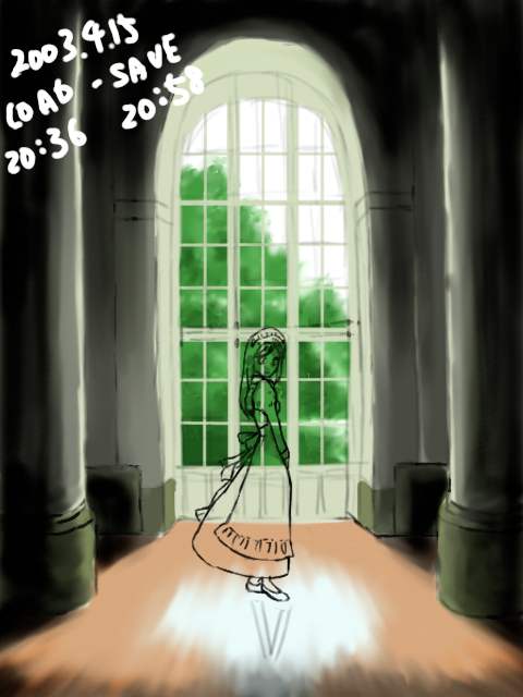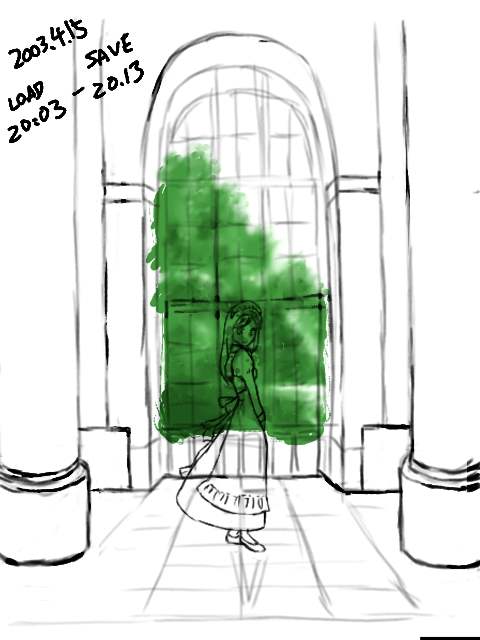 この絵は、製作過程の区切りごとに画像ファイルとして別名保存し、その都度トップにさらして更新するという、ちょっとしたイベント形式で公表していて、あちこちからリンクを張っていただくなど、わりと好評でした。