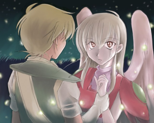 (この絵は)「最終決戦後、ライエルの元から去ろうとするサイザーをライエルが引き止める」絵、のつもりです。