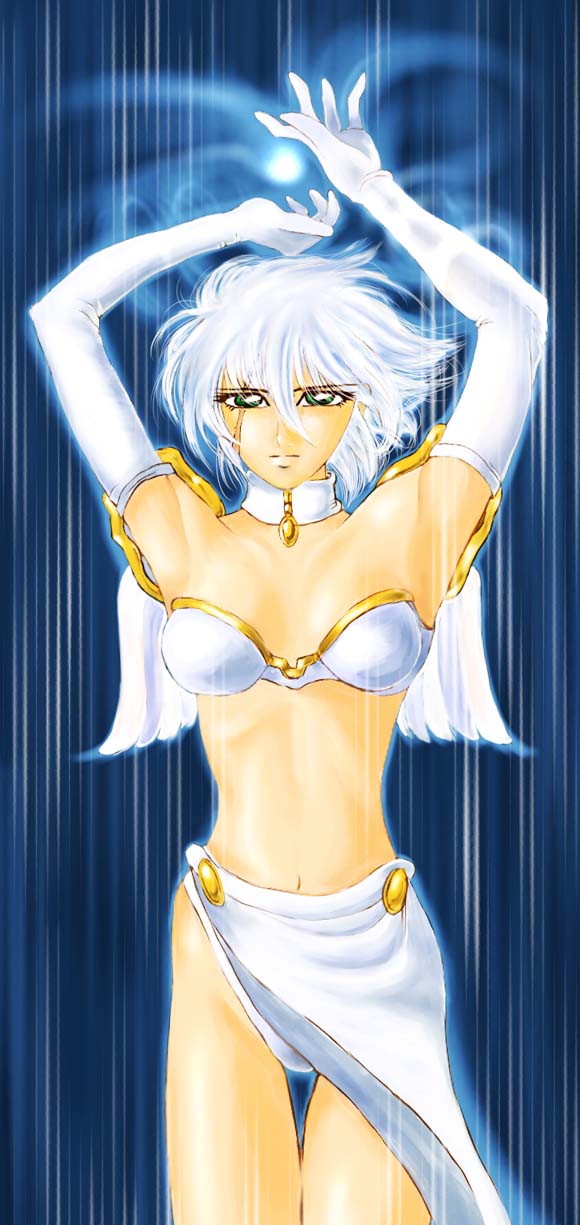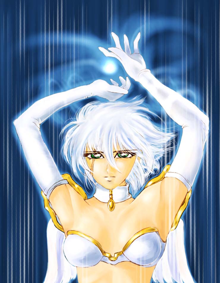 絵を仕上げるときのコンセプトは「宝石でできた乙女」(FFSのジュノーンだね)。オカリナのコスチュームは、布地の構成が派手なわりに色が地味なので、思い切って白と金を基調にしてみました。