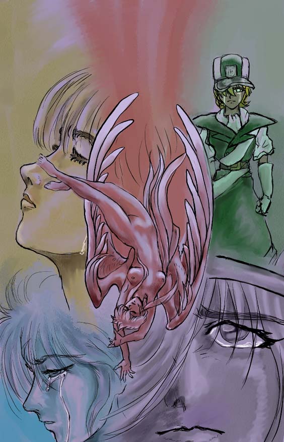 根本さんにはチャットでもお話ししましたが、描いた日の昼までは、町並を背景に飛翔する解放された笑顔のサイザー様、だったんですよ。ホントに。