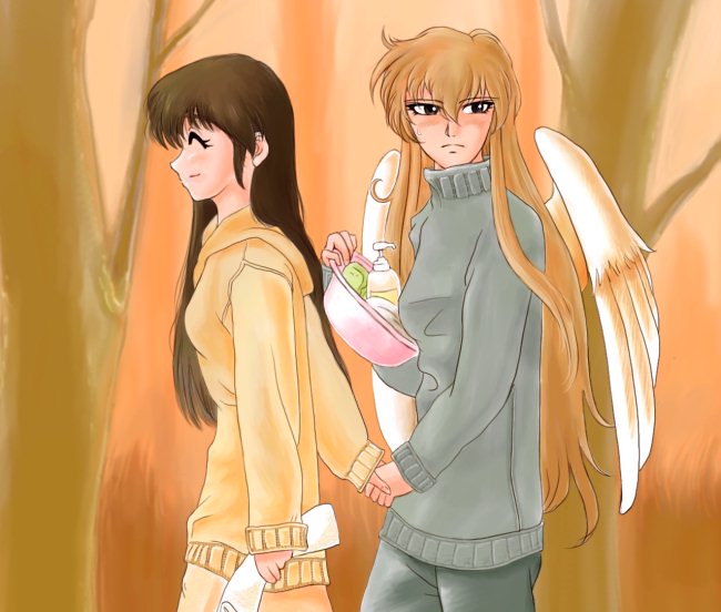 原作風、現実風、どちらにもとれるかも知れませんが、木立の中という背景で、両方とれるようにしました。