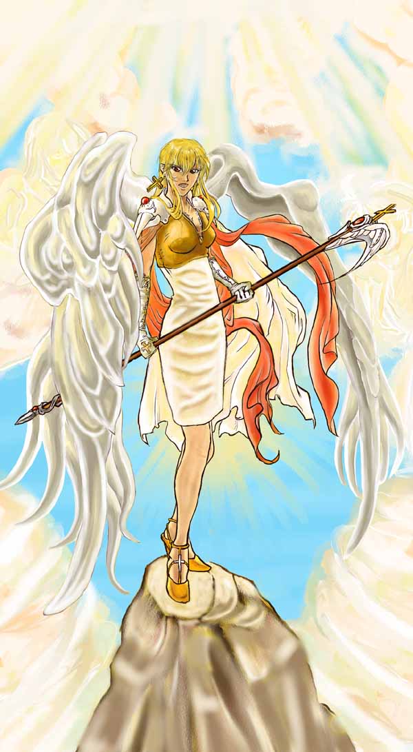 最初は、こんなタイトにする気はなかったのですが、「虜囚」のとき、意外に脚がきれいに描けたので、また挑戦してみました。 今回最大の賭けは、この羽根でした。Wガンダムゼロカスタムのプラモデルが、羽根を描くのに役立つことを発見。デザインが面白いので使ってみましたが、 真空パックのもちみたいな質感で、失敗でした。この羽根、どこがどうなっているのか、よくわからないですし。 天使の絵を集めた洋書を買いました。彫刻も含めて、けっこう良い絵を集めた本で、最初は考えていませんでしたが、この本を見て、背景を「これだ」と決めました。宗教画っぽくしてみたかったのですが、こりゃ難しいですわ。 両脇の雲に、パンドラ様とオカリナを、描いてみたのですが、合成したときに見えなくなってしまいました。 うーん、別にいいか。 ああ、やっぱり全体に失敗・・・。 |