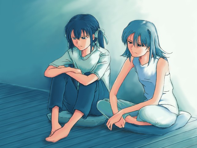 絵として悩んだのが色でしたが、けっきょく二人の髪の色である青と緑でうまくまとまりました。