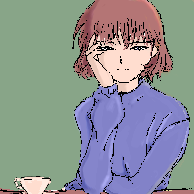 冷めた紅茶のカップを見つめながら腕組みをして、右手でほおを押さえている美汐さん。