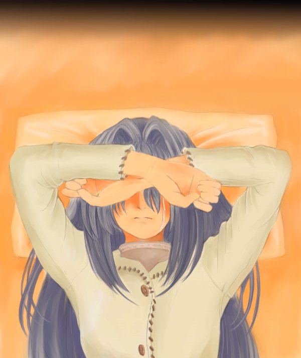 そして部屋でひとり泣いている。そんな名雪を描いてみました。 それにしてもこれだとなんか、押し倒したら泣かれた絵みたいですね・・・。 |