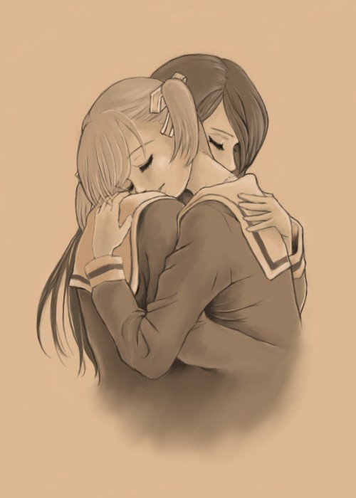 そして、二人の絆である胸にさげているロザリオが、制服ごしにふれあうような構図で。