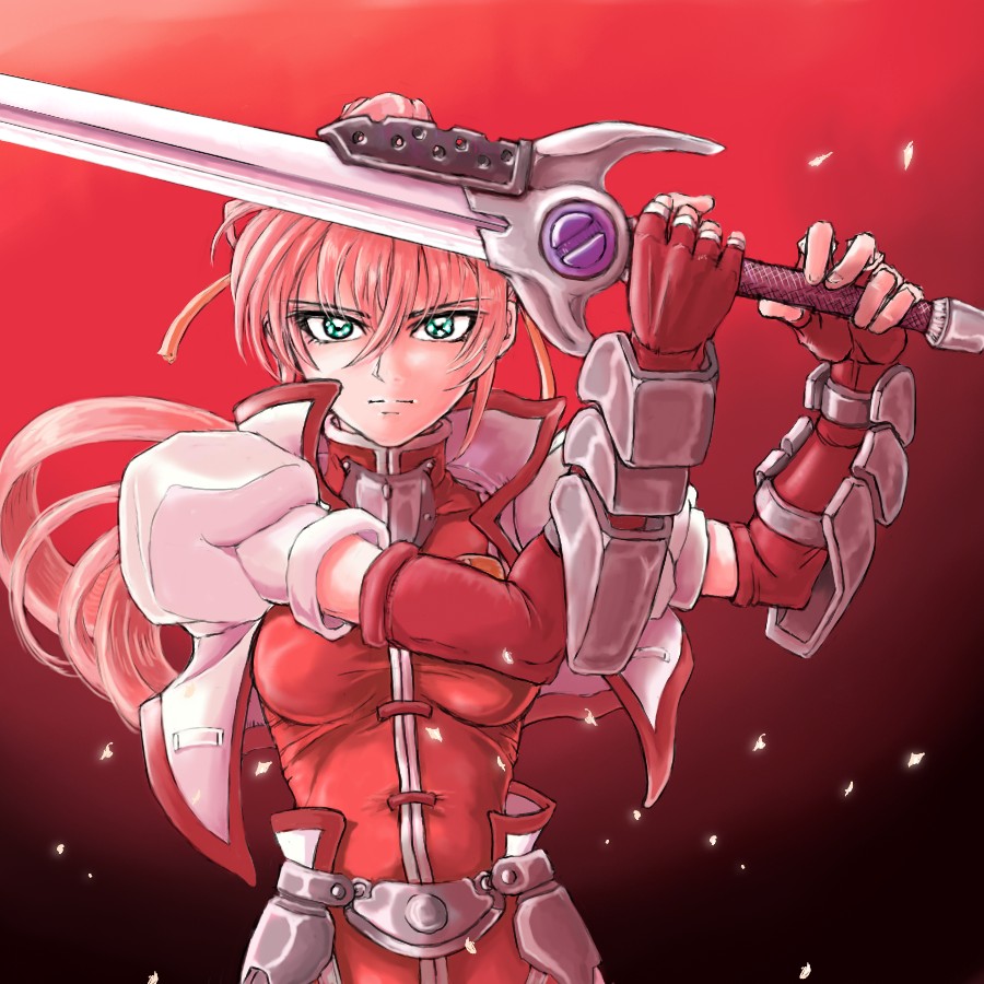 「魔法少女リリカルなのはA's」より、ヴォルケンリッターの将・剣の騎士シグナムと、その魂・焔の魔剣レヴァンティン。