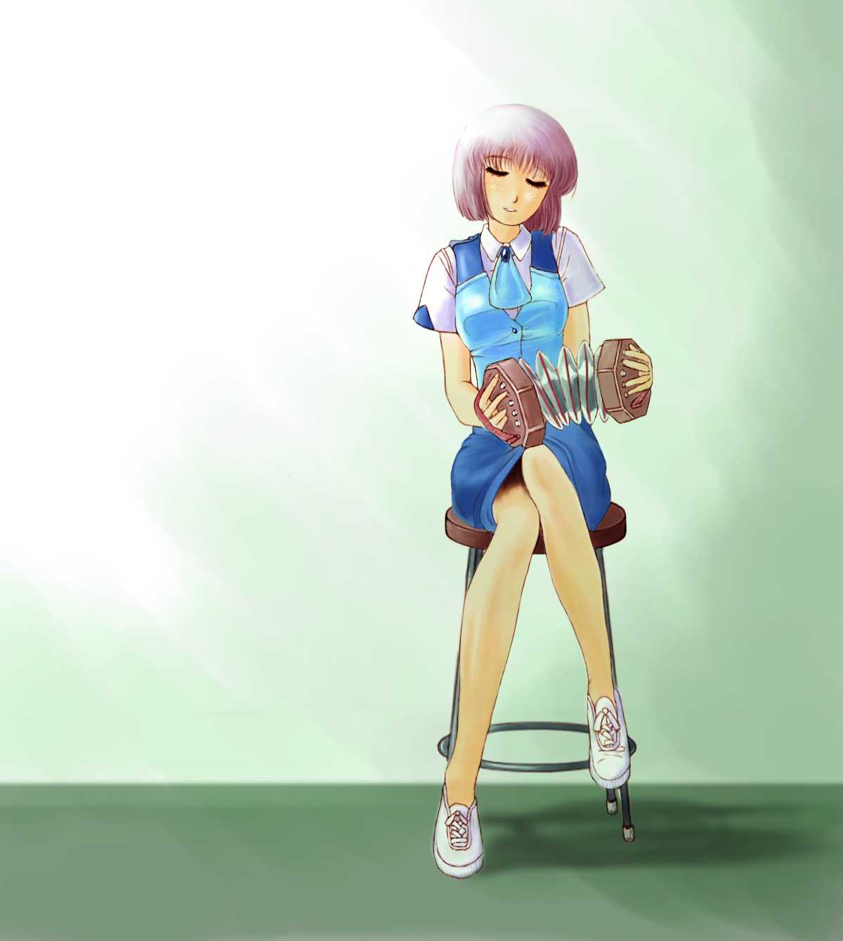 それと、楽器の練習なんて、アパートでは出来そうもないので、会社が終わった後、あるいは始業前とか、昼休みにこっそり練習している様子ということで、制服をあわせてリクエストにお応えしました。