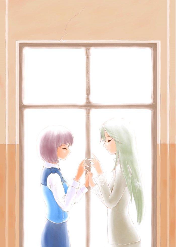 上の方が寂しかったのでヒビを入れ、窓枠は光線透過のためにブリーチ(大)で、大雑把にぼかしました。人物も、輪郭をやや残して、あとは飛ばしています。