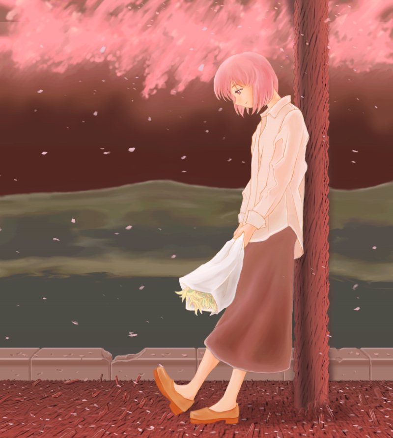 製作環境:PowerMac G4 450・WACOM FAVO・Painter4.0 季節はずれで桜の花が咲いているのは、ココネさんの髪を、茶色とか紫とかでごまかさず、思いっきりピンクでズバッと描きたかったからです。