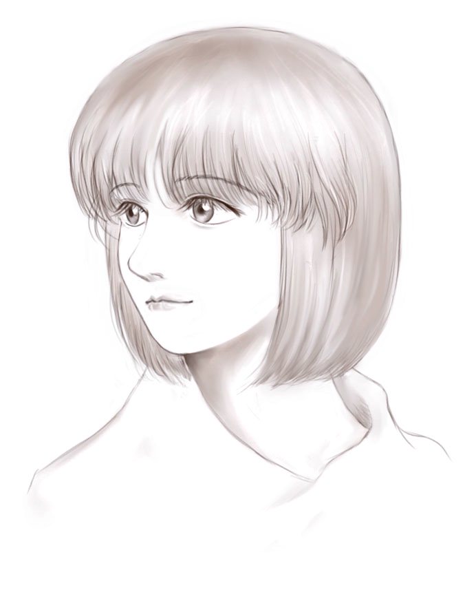 またしても、色がつけられなかったので、モノクロです。肌の白さを際だたせるために、薄墨ていどの色彩におさえました。
