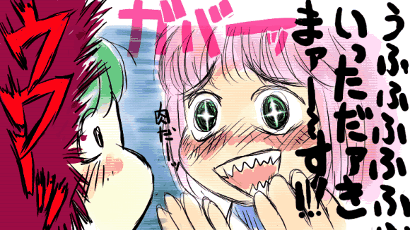 だが、がんばれココネ! えー。 「いっただあきまーす」のコマは、スタンダード・ブルー、煙草をふかしているコマは、モンスターコレクションからパロディとさせていただいています。 現在、様々な妄想が、あちこちからメールで寄せられています。 「や、やめてください! とか 「ココネぇ〜(原作通りならココネ・・・さん)、また上手になったねぇ〜。良かっ